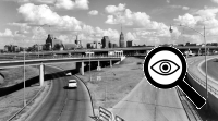 I‑10 eastbound approaching I‑35 (ca. 1950)